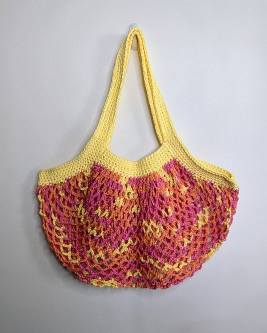 Diamond Mesh Round Market Bag (Medium Sunny Yellow & Playtime Ombre)