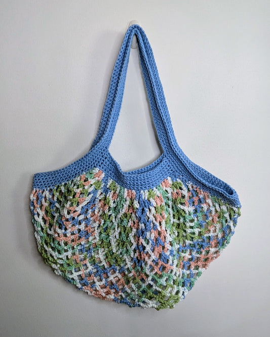 Diamond Mesh Round Market Bag (Medium Light Blue & Stoneware Ombre)