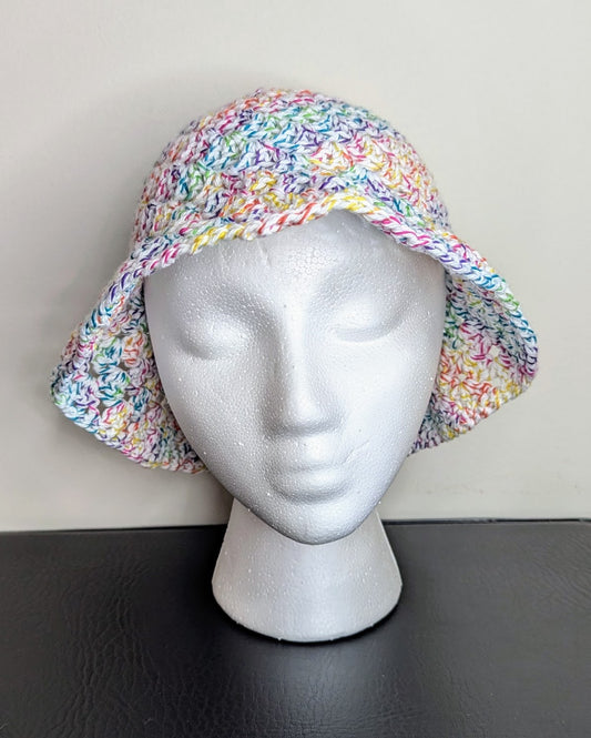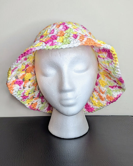 Granny Stitch Crochet Bucket Hat (Rainbow Confetti)