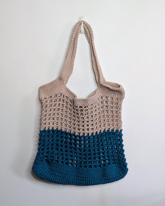 Diamond Mesh Round Market Bag (Medium Light Blue & Stoneware Ombre)