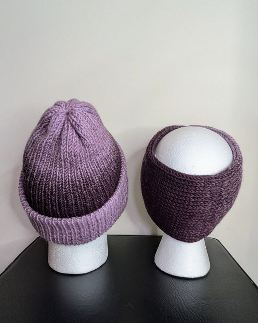 Same Skein Double Knit Hat & Headband Set (Purple)