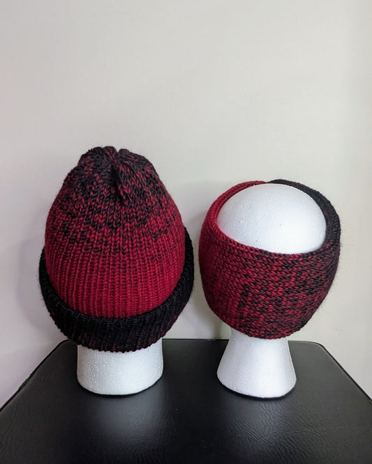 Same Skein Double Knit Hat & Headband Set (Red & Black)