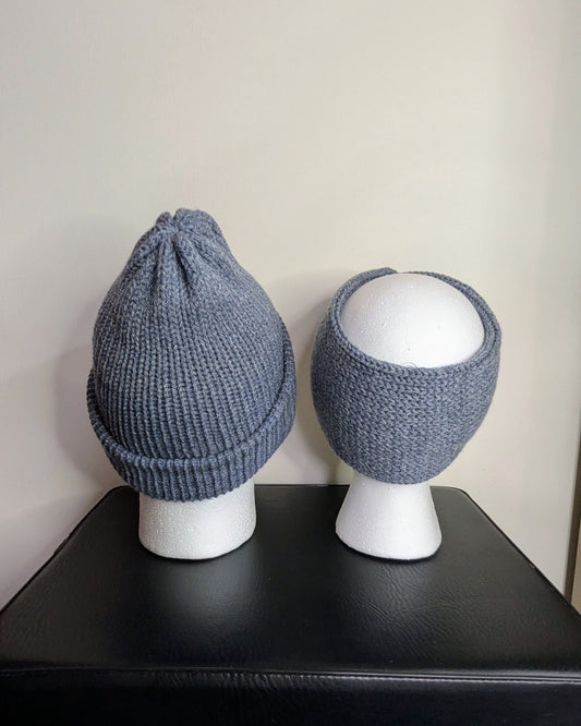Same Skein Double Knit Hat & Headband Set (Denim Tweed)