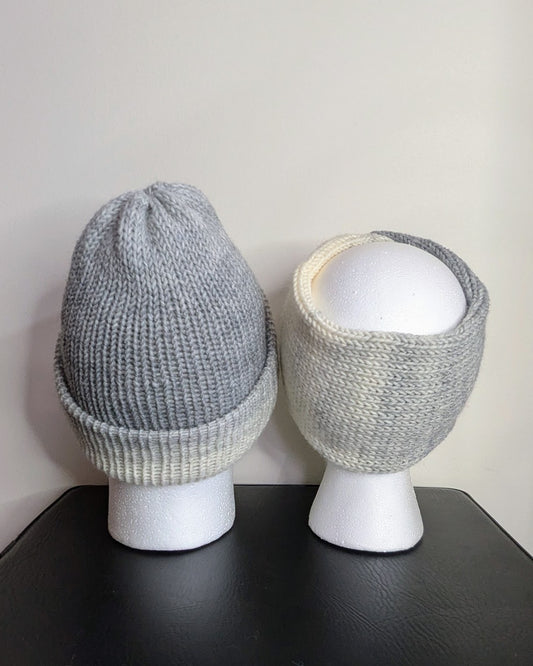 Same Skein Double Knit Hat & Headband Set (Cream & Gray)