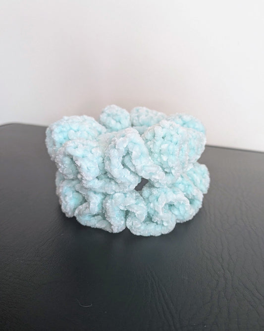 Velvet Ruffle Scrunchie (Bleached Aqua)