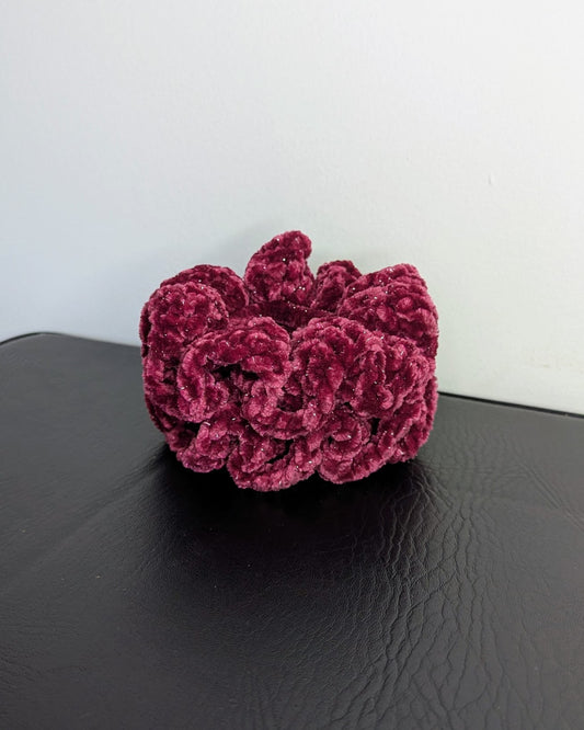 Velvet Ruffle Scrunchie (Dark Crimson Sparkle)