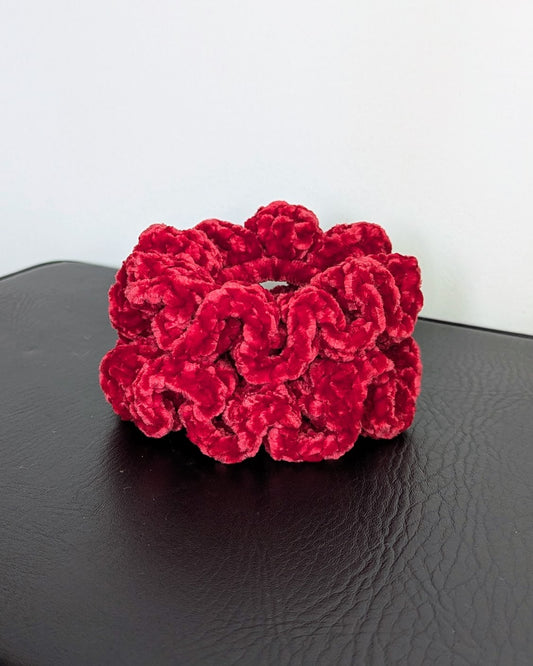 Velvet Ruffle Scrunchie (Dark Crimson)